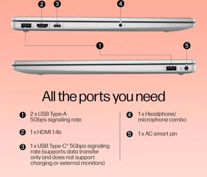 | Ports | 1× USB-C (5Gbps, data only) 2× USB-A 1× HDMI 1.4b 1× Audio Jack 1× AC Smart Pin |